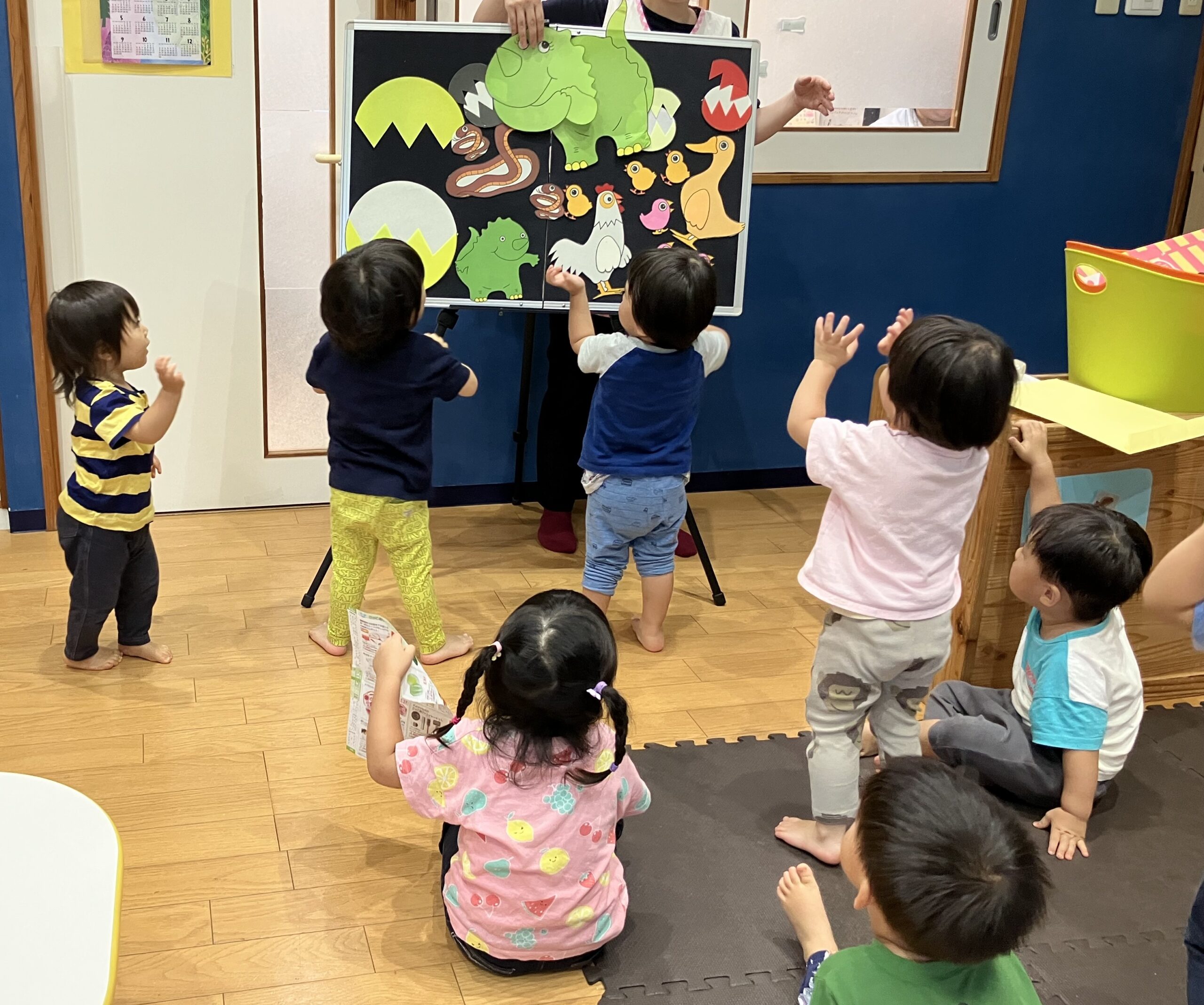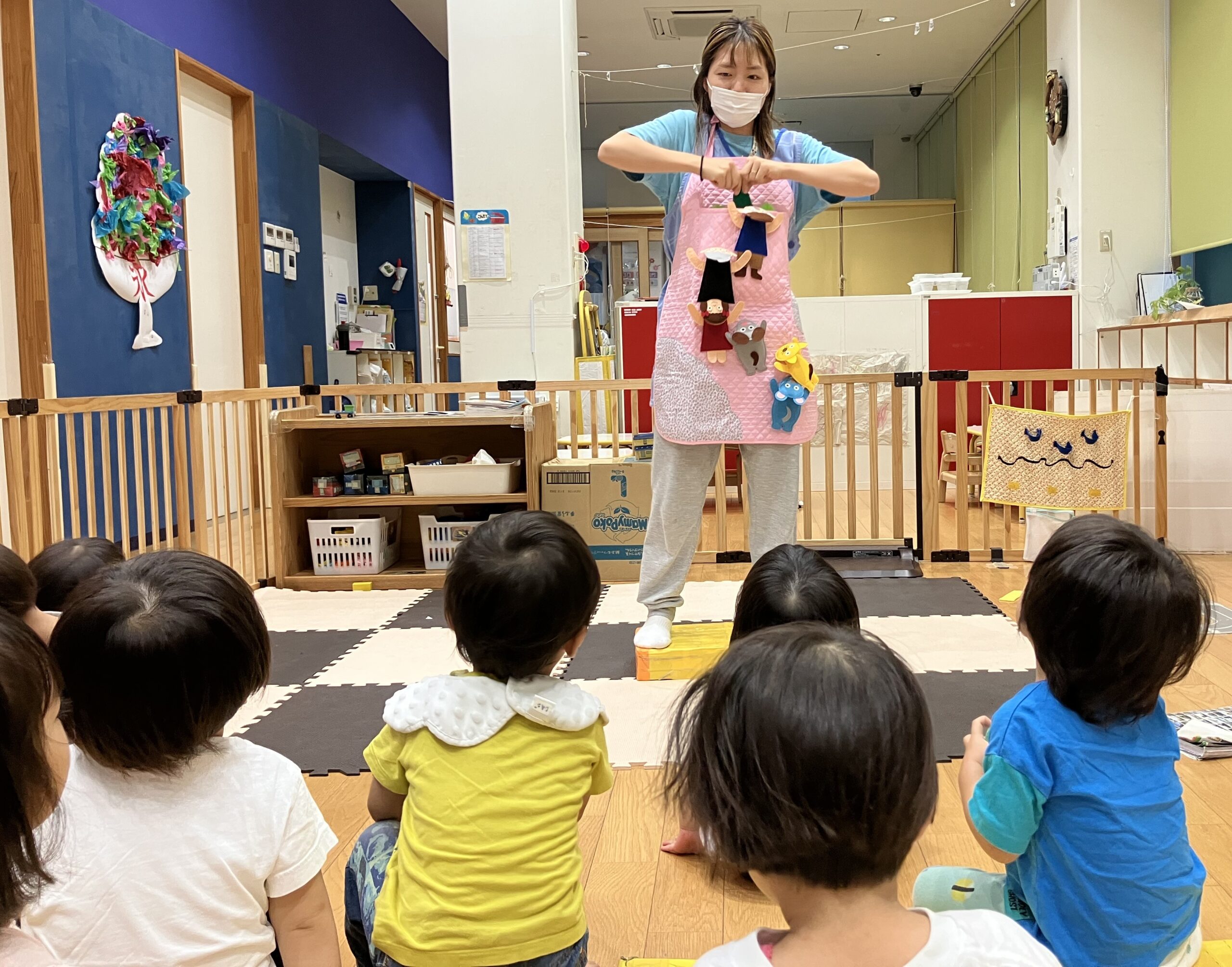 絵本だけではなく、パネルシアター、エプロンシアターなどで様々なお話を楽しんでいます♪お話を通して季節や行事を感じられたらと思っています。